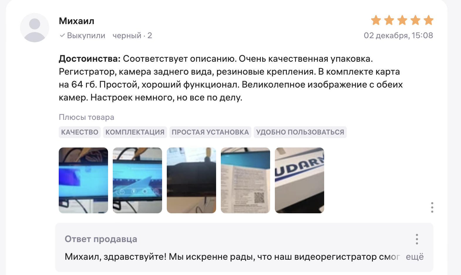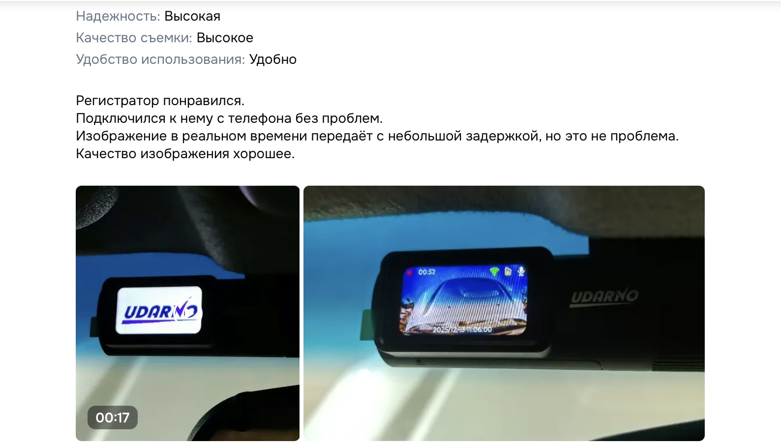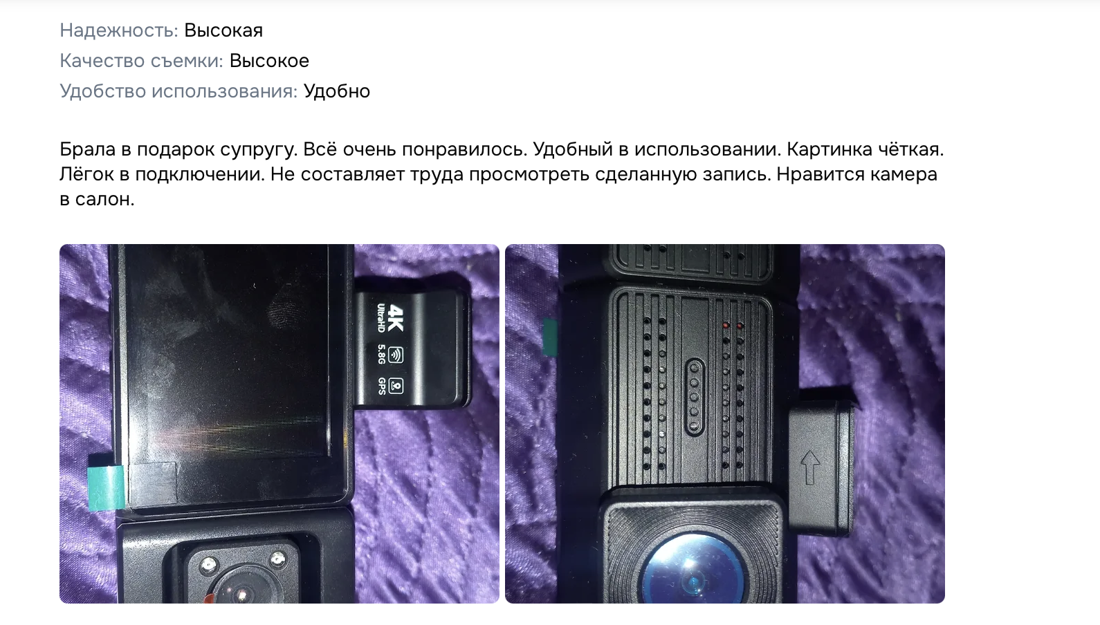 В использовании неделя. Пока глюков не обнаружено, приложение скачал, подключается, скачиваются видео на телефон через Wi-Fi. Все три камеры работают, снимают хорошо. Видео с камер записывают отдельно каждая камера, Задняя камера записывается не зеркально. Зимой не греется, летом посмотрим. Пока все устраивает, купил то, что искал.